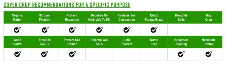 Rapid establishment to prevent wind and water erosion. Fixes atmospheric nitrogen to increase soil nitrogen levels. Improves soil permeability for increased air and water penetration, reduces soil compaction, and increases root development potential. Recycles nutrients that would have been lost to leaching or runoff. Potential forage for fall grazing.