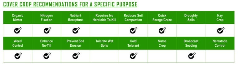 Rapid establishment to prevent wind and water erosion. Improves soil permeability for increased air and water penetration, reduces soil compaction and increases root development potential. Fixes atmospheric nitrogen to increase soil nitrogen levels. Potential forage for fall and spring grazing, spring silage or hay.