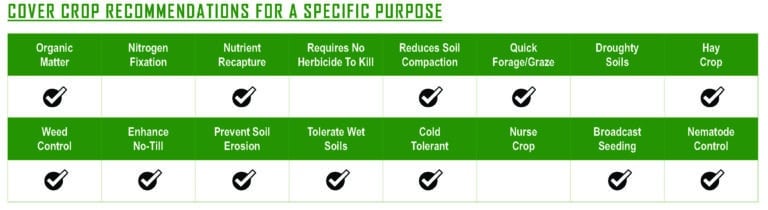 Improves soil permeability for increased air and water penetration, reduces soil compaction, and increases root development potential. Recycles nutrients that would have been lost to leaching or runoff. Holds surface soil in place. Improves soil tilth which can benefit t any crop that follows. Potential forage production for fall grazing.
