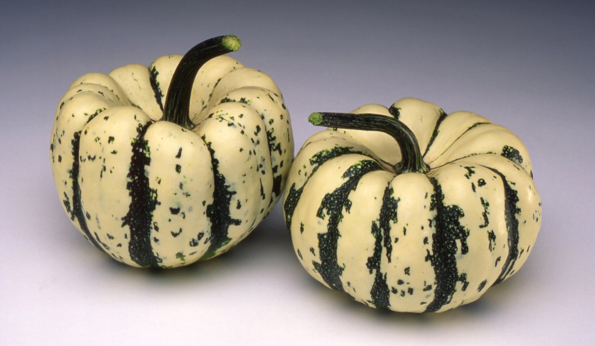 Delicious and ornamental with an appealing sweetness and flavor. Creamy-white rind with attractive green stripes and mottling. Orange interior is tasty and smooth. Vigorous plant produces an abundance of fruit.