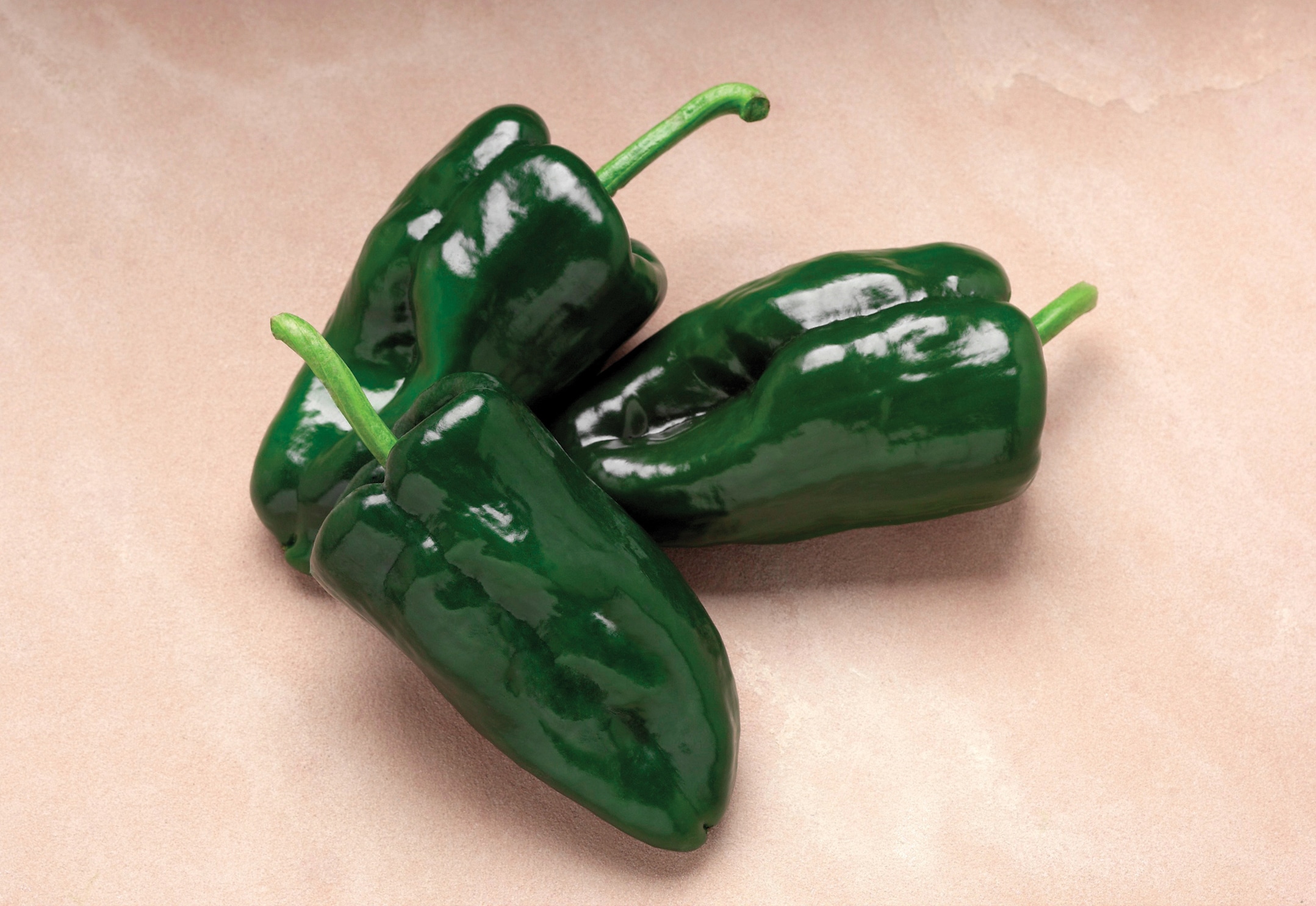 A traditional-looking Poblano- very dark-green, right from the start, with firm flesh. Reliable set, early for type, and highest yields available. Typical mild flavor- used for chili rellenos.