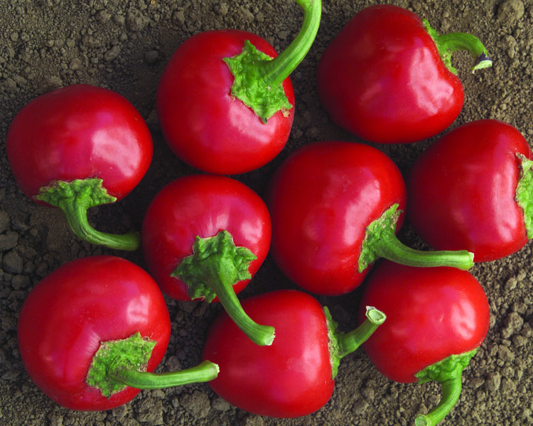Time Bomb produces red, hot cherry peppers with a light smoky flavor. Producing fruit with about 1,000 Scoville units, Time Bomb has a light heat. These are great pickled, processed or chopped into salsas.
