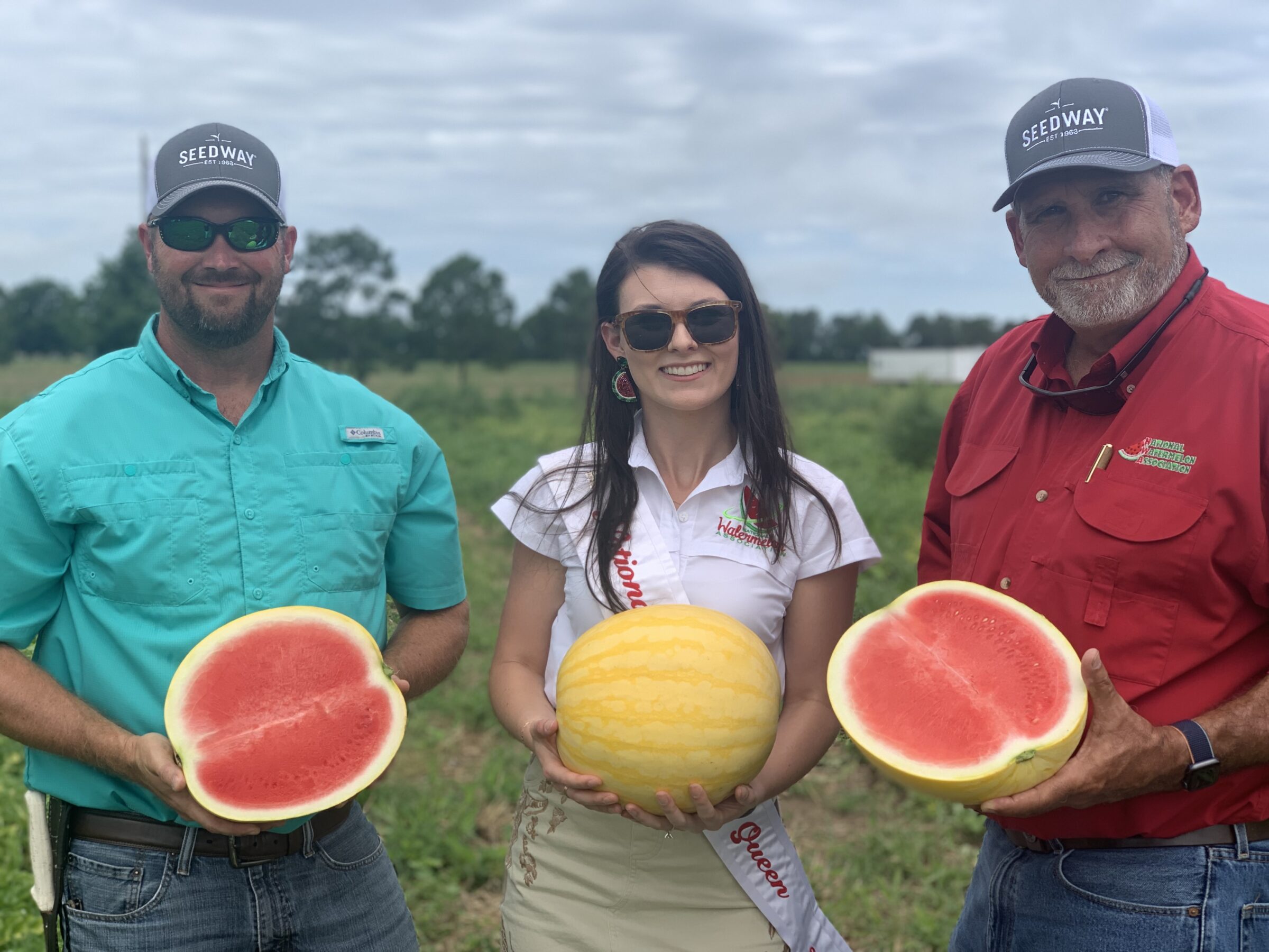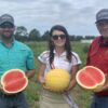 Deep red flesh with unique YELLOW rind. Excellent flavor with crisp flesh. Very nice eating experience. Round to blocky shape. Nice plant with leaves that will have yellow specks on them in the field. Great yielder with varying sizes. Eye Catcher.