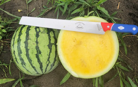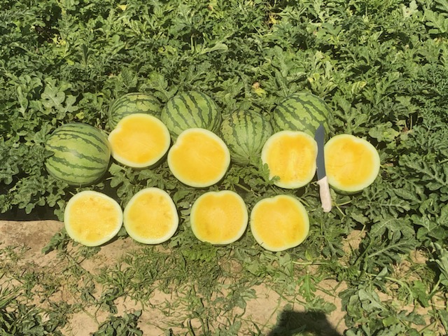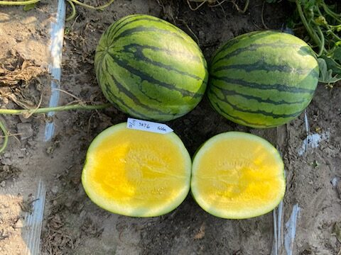 Deep yellow flesh and great rind definition. Great Flavor. Flesh is very sweet and crunchy with high brix. Tiger stripe with vigorous plant and excellent fruit setting. Strong yielding.